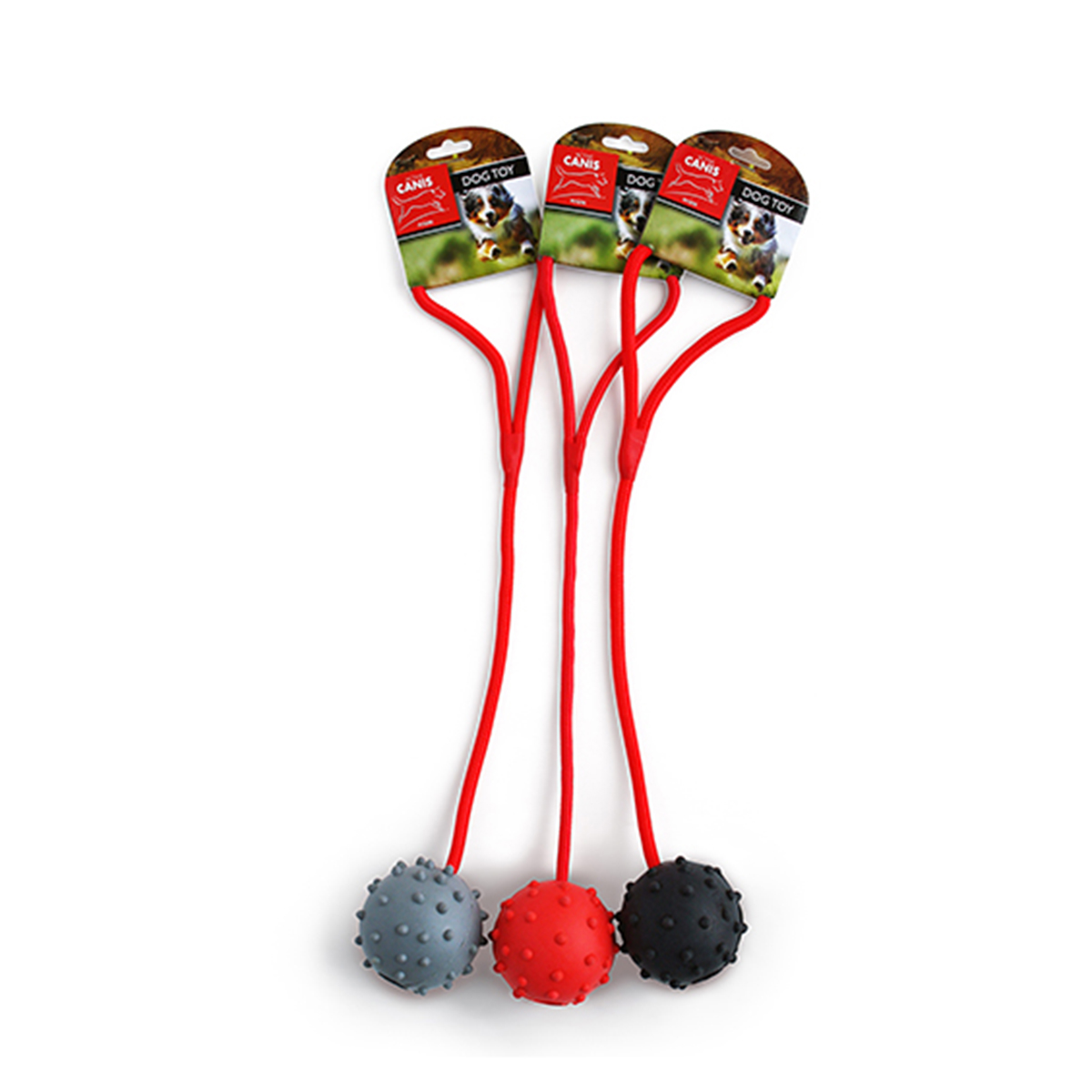 Ball med tau, fra Active Canis. Blandede farger.