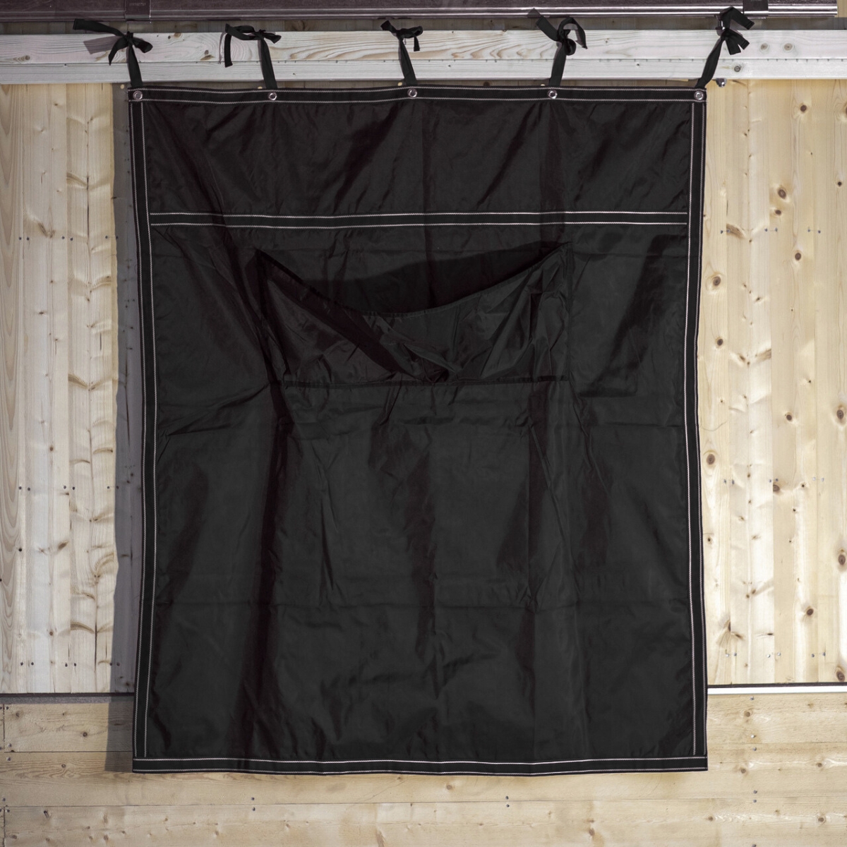 Klassisk boksgardin som egner seg til å ha med på konkurranser. Slitesterk, smuss- og vannavstøtende materiale. Stilig kantbånd. Laget i nylon med maljer øverst og knyting som gjør den lettere å henge. En større lomme i midten som fungerer perfekt for oppbevaring av børster og bandasjer.