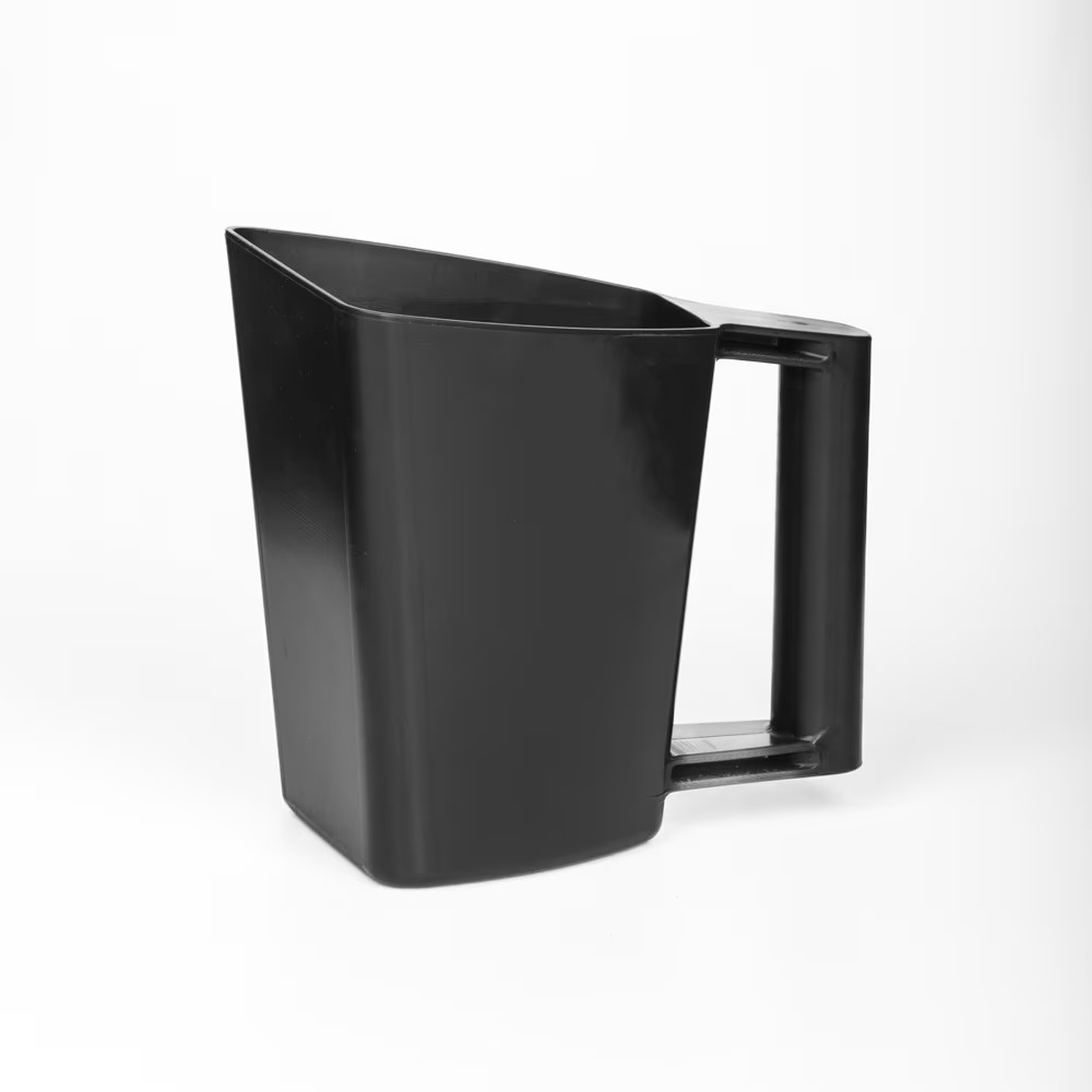 Svart 1 liters foderskopa med invändig gradering för enklare användning.