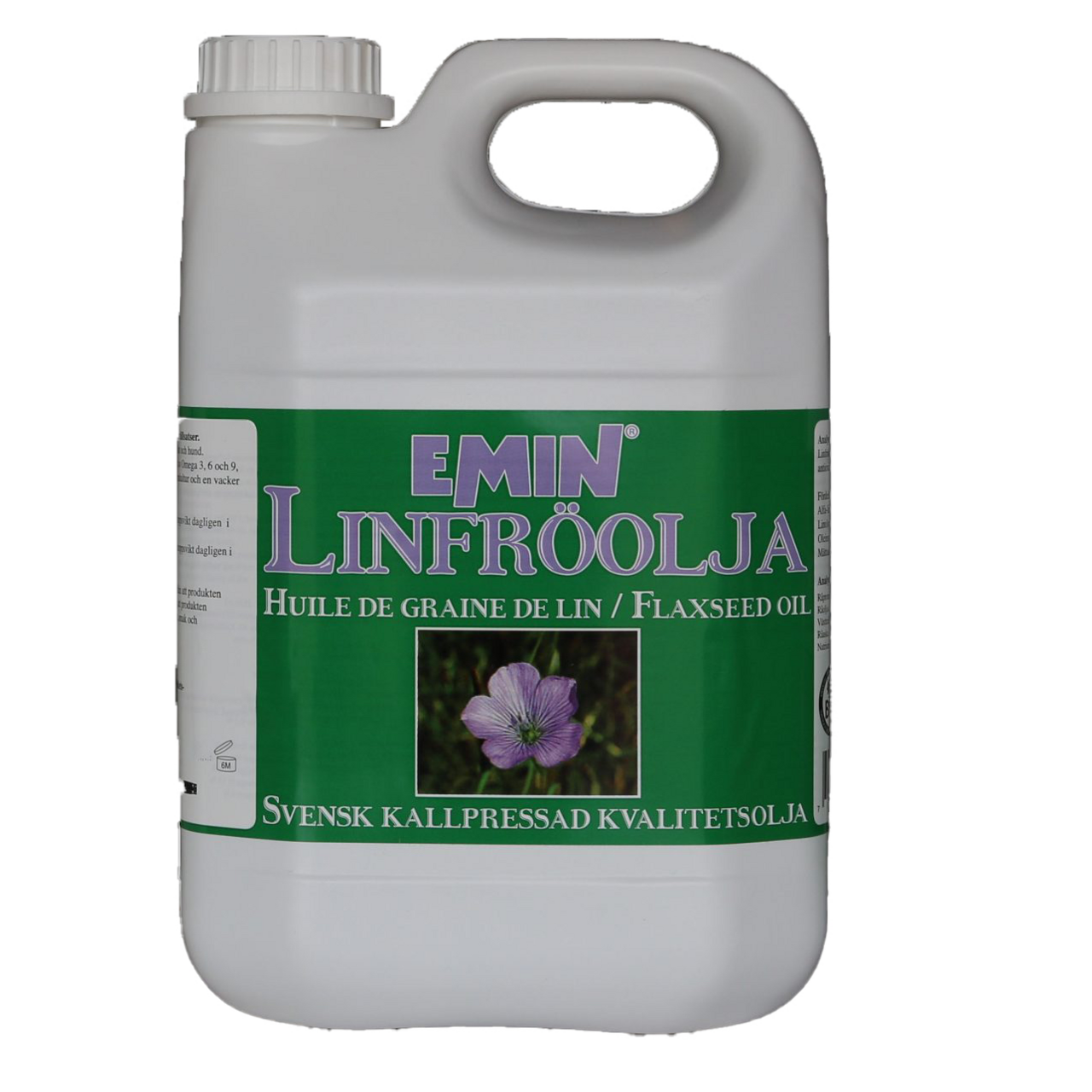 Kaldpresset, svenskdyrket linolje. Med svært høyt innhold av omega 3, 6 og 9. Gir svært fint hårlag og bidrar til å holde magen/tarmen i orden.