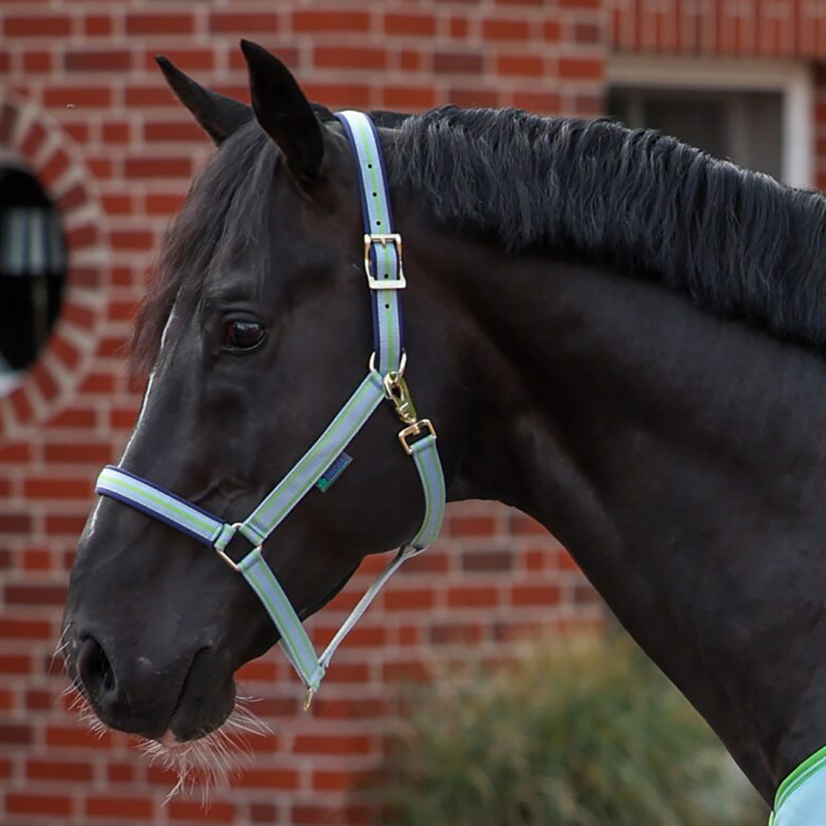 Dobbeltsydd i nylonbånd. Fôret med mykt neoprenfôr i nese- og nakkestroppene. Kneppes med rullespenne. Kroken i kjevestroppen kneppes i en formet løkke.