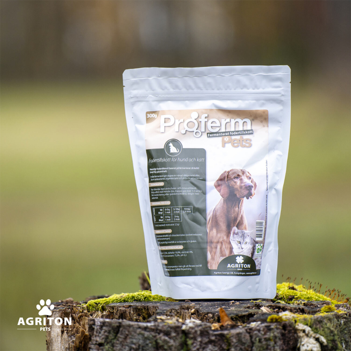 Proferm Pets är ett prebiotiskt kompletteringsfoder för hundar och katter. Produkten är gjord