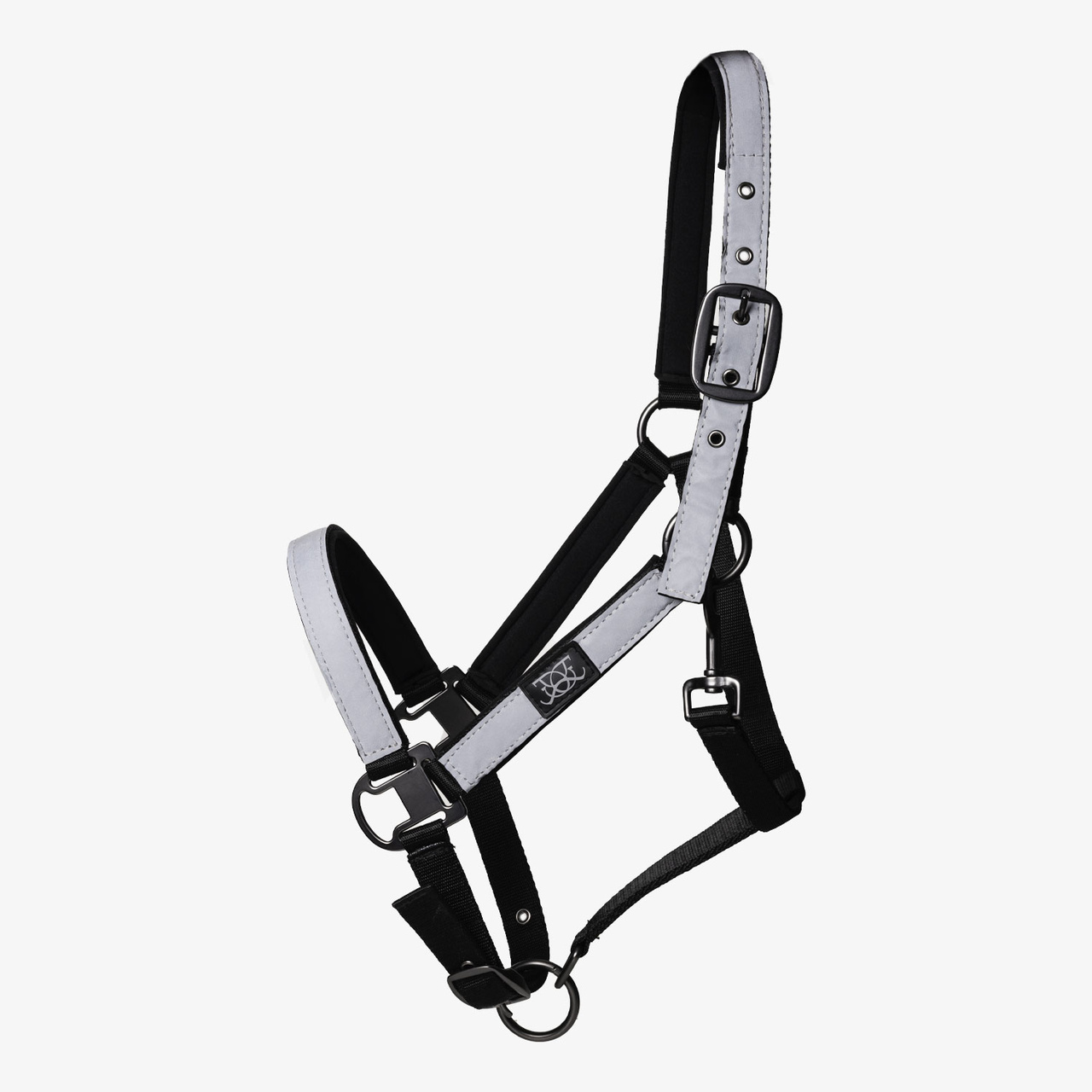 Grimma med ränder i reflexmaterial. Mjukt fodrad i nacke o nos. Justering vid nacken med spänne, stängs med pistolhake.