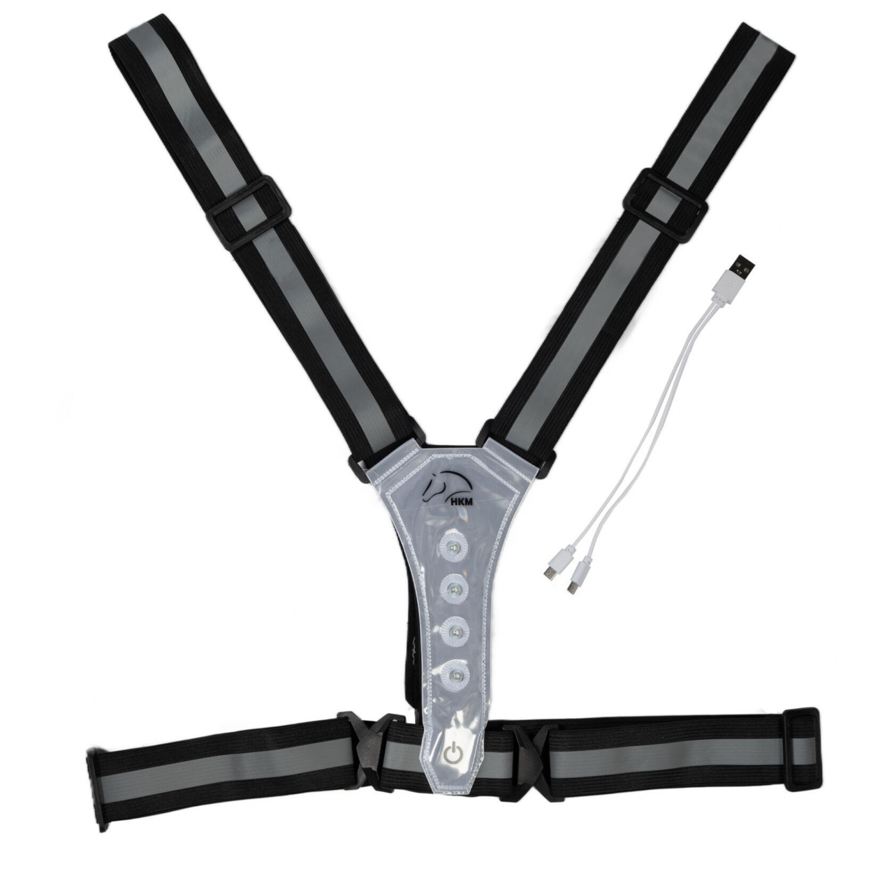 Reflexsele med LED-belysning som ökar synligheten vid ridning i mörker eller dåliga ljusförhållanden. Västen är lätt, justerbar och designad för att bäras över ytterkläder. Tydliga reflexdetaljer och inbyggda LED-lampor. Laddbara batterier.