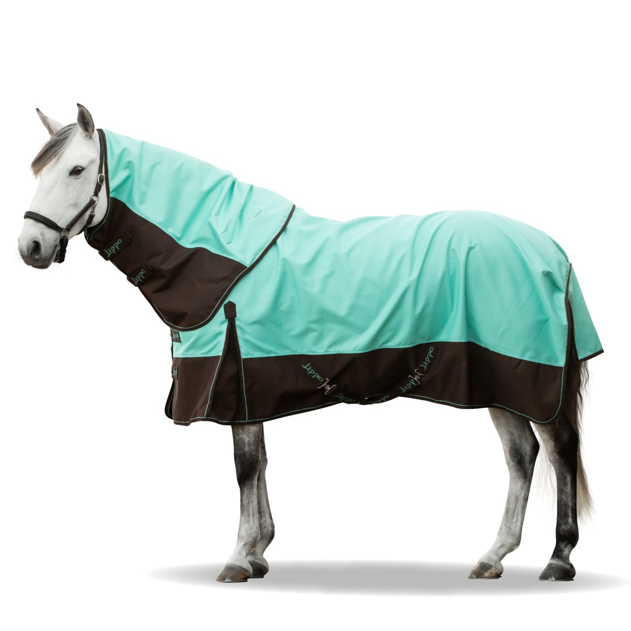 Lätt och smidigt täcke i slitstark 1200D med god passform. 3000MVT andasfunktion och 3000WP vattentäthet. Dubbla bogspännen med kardborre, kryssgjordar, bogveck, svansskydd, avtagbar svansrem och fäste för bensnören. Levereras med avtagbart hals.