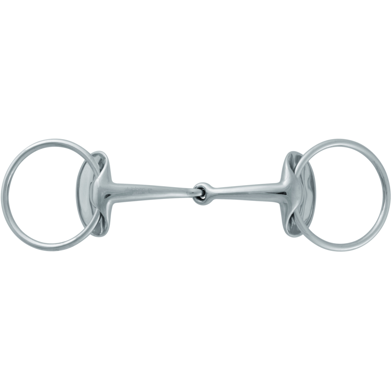 Todelt bitt designet for å gi maksimal støtte og komfort for hestens munnviker. Sideplatene forhindrer at huden klemmes av ringene, samtidig som de gir stabilitet og sidestøtte. Sideplatene hjelper også med lett sidestøt, noe som gjør bøying og styring enklere – spesielt for unge eller uerfarne hester. Et bitt som kombinerer presisjon og komfort, og som gir en rolig, balansert kontakt mellom hest og rytter.