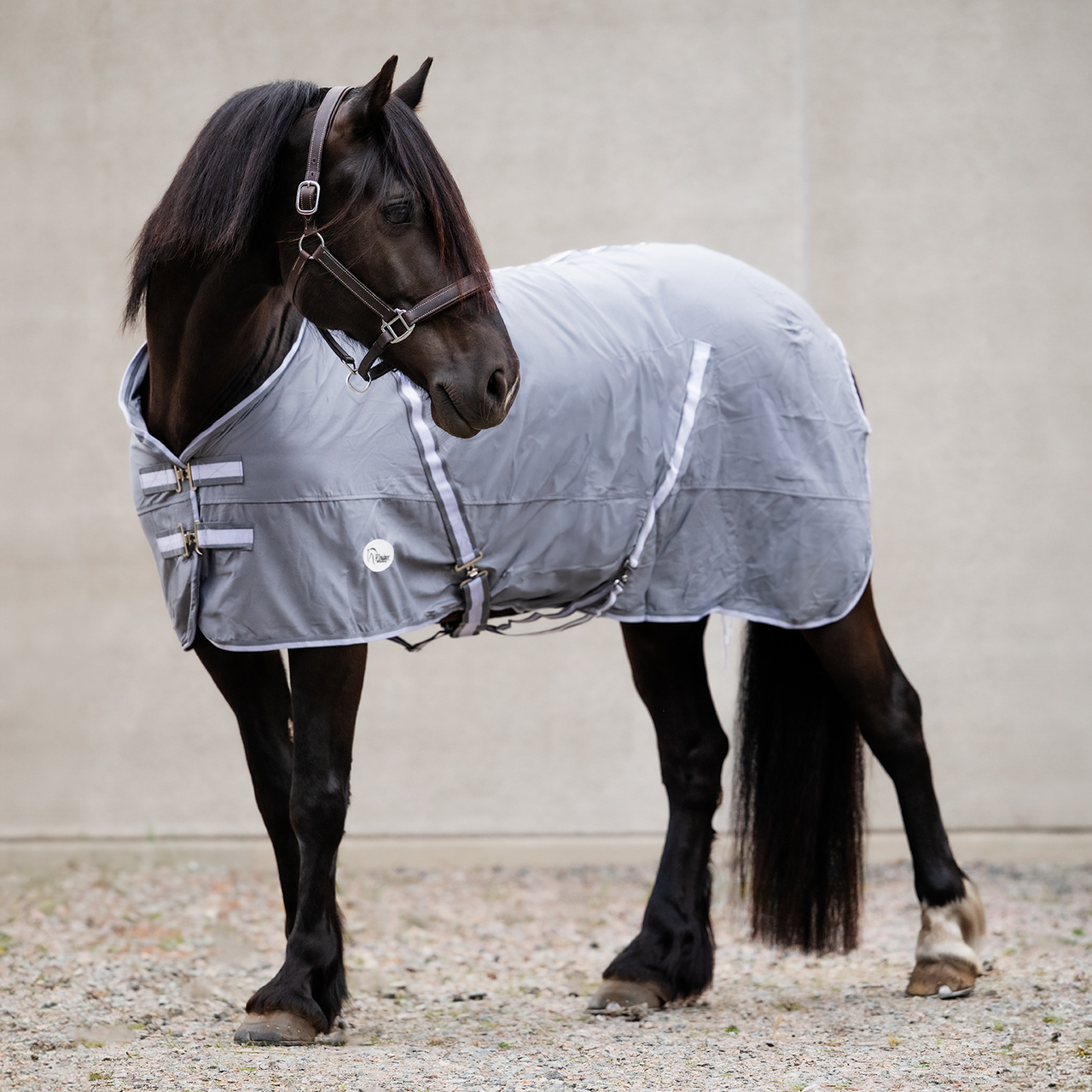 Tunt täcke som fungerar som svett-, stall- eller transporttäcke. Hjälper till att hålla hästens temperatur. Bogknäppe framtill och kryssgjordar.