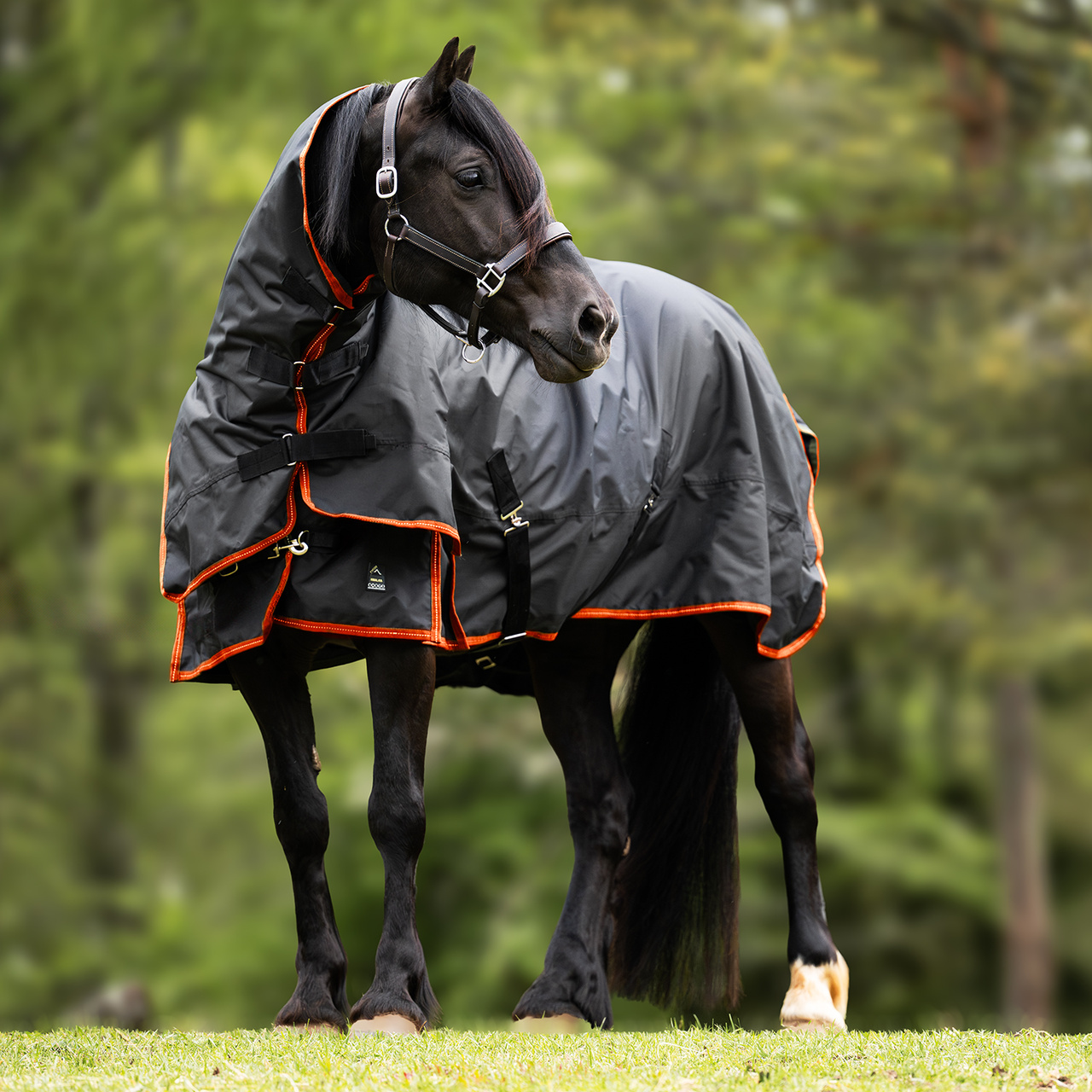 Utetäcke med fast hals och 250g fyllning. Bra andningsfunktion och i 600 D ripstop. Vattentätt med vattenpelare 3000 mm och andasfunktion 3000 mvt. Bogknäppe med T-spännen, två kryssgjordar, elastiska benremmar och svansskydd. Halsen knäpps med kardborre. Bandkant med reflex söm.